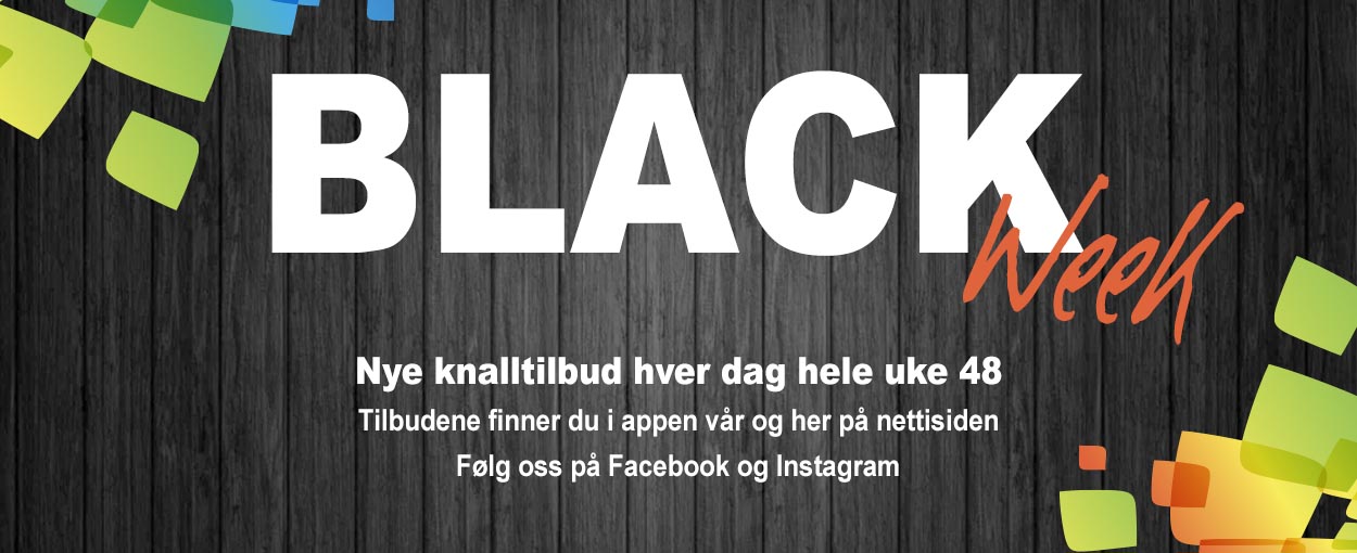 Black Week er i gang! Gjennom hele uke 48 får du knalltilbud på en rekke varer. Følg oss på Facebook og Instagram, så får du dagstilbudene rett på din telefon. Tilbudene kan bestilles i appen vår, i nettbutikken eller på telefon til ditt lokale ordrekontor.