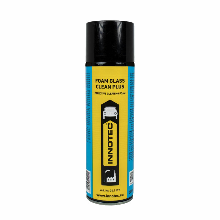 Foam Glass Clean Plus er et helt nyutviklet skumbasert renseprodukt for glatte flater som er godkjent for bruk i matvareindustrien (NSF-merket). Produktet fjerner fett, insekter, nikotin o.l. fra alle typer glass, plexiglass og andre plasttyper uten å etterlate produktrester. Foam Glass Clean Plus er skumbasert og renner derfor ikke lett av vertikaler flater.