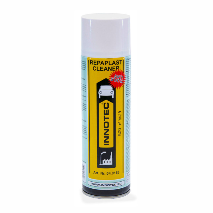 Repaplast Cleaner Antistatic forhindrer oppbygging av statisk elektrisitet som vanligvis forekommer ved pussing og behandling. Løser meget effektivt opp limrester, olje, fett, silikon osv. Fordamper meget raskt og etterlater ingen flekker eller skjolder, noe som reduserer ventetiden før videre bearbeidelse. Egner seg meget godt til å rengjøre overflater før f.eks. TopFix, Repaplast, AluScratch, grunninger og fyllere. Et meget velegnet produkt for å rense alle plasttyper og lettmetall-overflater.