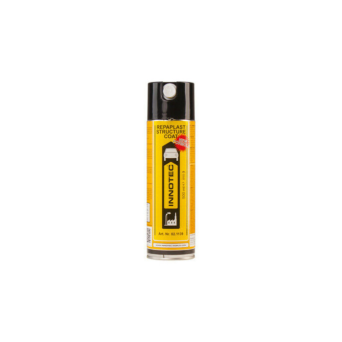 Metode for bruk: La de rensede og forbehandlede plastdelene fordampe i minst 10 minutter. Rist beholderen godt i 2 minutter. Påfør tynne strøk Repaplast Structure Coat NF på området som skal repareres. Ved å variere sprøyteavstanden og velge den medfølgende riktige dysen (hvit dyse = fin struktur – rød dyse = grov struktur) er det mulig å etterligne OEM-strukturen. Bruk Replast Structure Coat NF på resten av plasten der det er nødvendig. Avslutt alltid behandlingene med Repaplast Structure Coat NF med Repaplast Color Finish Better Care.