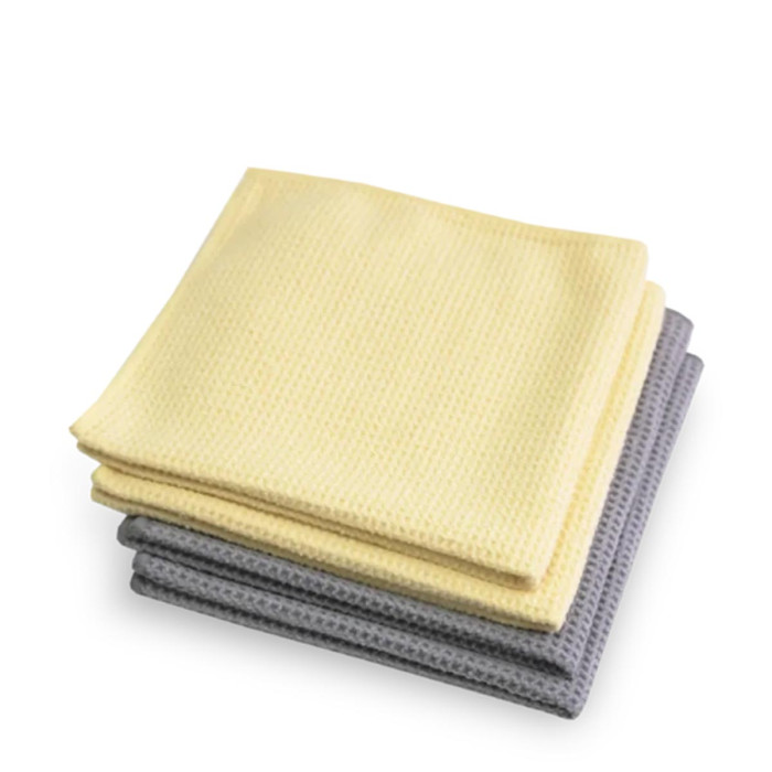 Den perfekte kluten til stripefri rengjøring og tørking av glassruter. Den unike veveteknikken garanterer en fremragende smussløsekraft og en stripefri tørking med Glas Cleaner eller Allround Surface Cleaner. Kluten på 320 g/m² med sin robuste søm sørger for en lang holdbarhet, også ved mange vasker. I forbindelse med Glas Star (Gs) også ideell til fjerning av vaskerester og fett. 2 gule og 2 grå kluter (f.eks. for våt- og tørrengjøring).