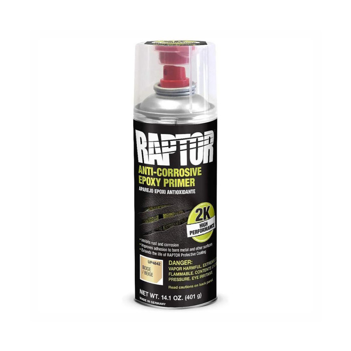 RAPTOR Anti-korrosiv epoksyprimer er en 2K høyytelses primer spesielt utviklet for å brukes under RAPTOR Protective Coating for ytterligere å utvide de beskyttende og anti-korrosive egenskapene til RAPTOR. Den avanserte harpiksteknologien i RAPTOR Anti-Corrosive Epoxy Primer forbedrer vedheft til bart metall og de fleste andre preparerte overflater. Den inneholder en blanding av anti-korrosive tilsetningsstoffer for å hemme rust og korrosjon.