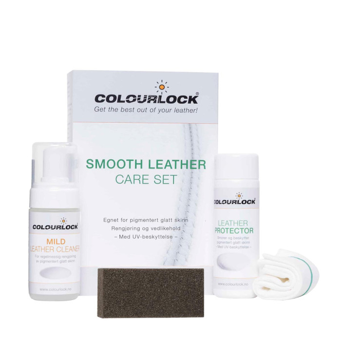Pleiekit for pigmentert skinn. Inneholder mild skinnrens og Leather Protector. Protector tilfører ernæring til skinnet og bidrar til å holde læret mykt og smidig. Inneholder antioksidanter som motvirker aldring. Produktets UV-filtre beskytter overflatene mot falming og sprekkdannelser.