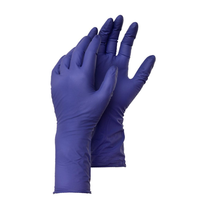 Ekstra lang engangshanske i nitril. Slitesterk og akseleratorfri. Slitesterk 0,15 mm tykk i nitril med lengre mansjett for ekstra beskyttelse. Forbedret komfort takket være den fleksible formelen. Lateks- og akseleratorfri for redusert allergirisiko. Egnet for kontakt med næringsmidler. Beskyttelse mot virus EN ISO 374-1:2016/Type B, JKPT. Lengde: 280mm